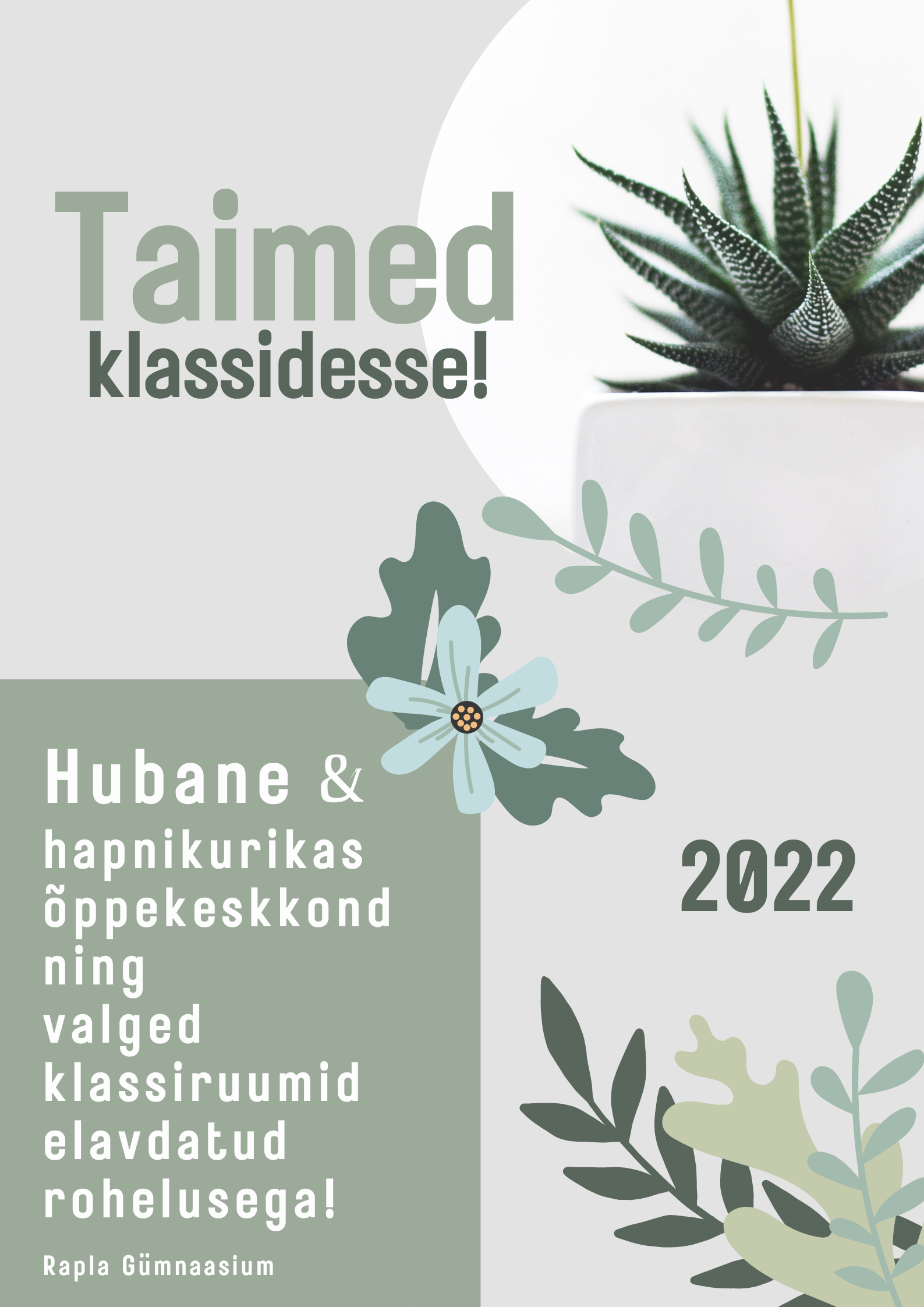 Soovime lisada igasse klassi, kus toimuvad igapäevaselt tunnid, vähemalt ühe taime, mis elavdavad meie kooli valge ja puhta nägemisega klassiruume. Valime taimed, mis ei nõua palju kastmist ning võtame arvesse ka õpetajate eelistused taimede osas.