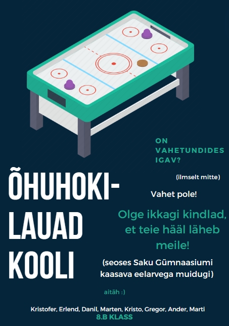 Sul on koolis igav? Pole? Vahet pole, anna ikkagi hääl meile ja toome kooli õhuhokilauad, et vahetundides midagi veel teha oleks!