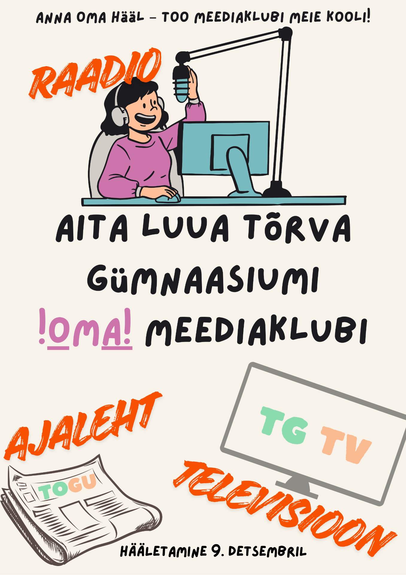 Noorte meediaklubi looks kooli ägeda võimaluse, kus õpilased saavad teha videoid, podcaste, artikleid, fotosid ja muid loovprojekte. Klubis õpitakse, katsetatakse ja luuakse päris meediasisu – just nii, nagu päris meediamaailmas!