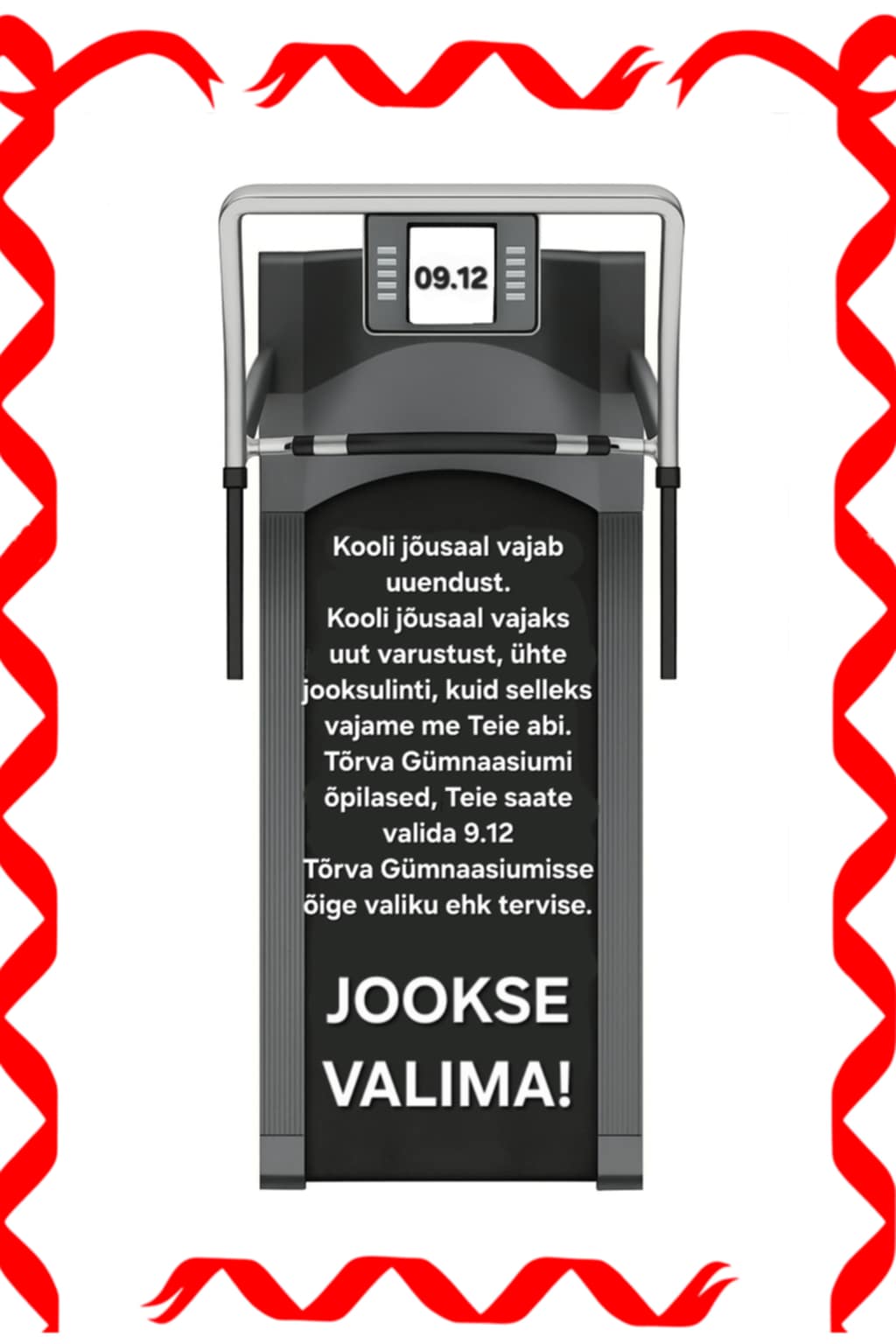 Soovime kooli jõusaali korralikku jooksulinti, et treeningud oleksid mitmekülgsemad ja tõhusamad. Jooksulint aitab hoida head vormi iga ilmaga ning pakub nii soojendust, vastupidavustreeningut kui ka lõbusat tempotrenni.
